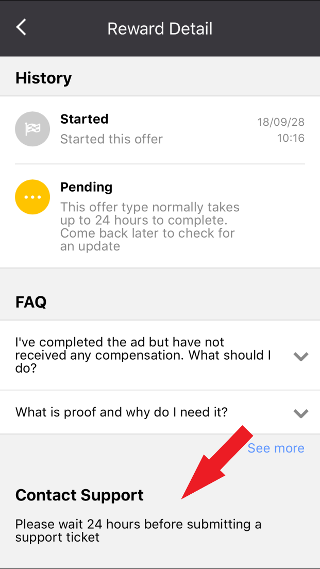 Clicca su "Not Rewarded" per visualizzare la lista delle offerte completate per le quali non hai ancora ricevuto le tue monete. Puoi seguire lo stato della tua offerta. A volte sono necessarie 24 ore per ricevere le monete.