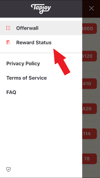 Clicca su "Reward Status" per visualizzare la lista delle offerte completate.
