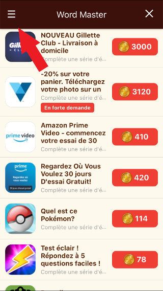 Se non hai ricevuto le monete corrispondenti alla tua offerta, apri la schermata delle offerte e clicca sull’icona in alto a sinistra.